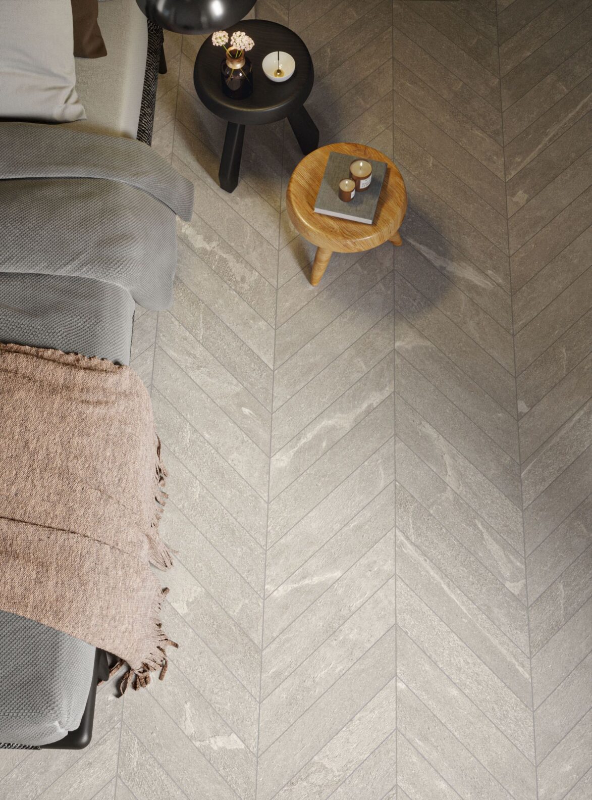 Asphalt Rock porcelain tile beautifully showcases how layers are enriched by the petrol in the Mediterranean seabed. Capturing innate intricacies of how the rock is stained with adornments of fossilization, stippling, and veining.