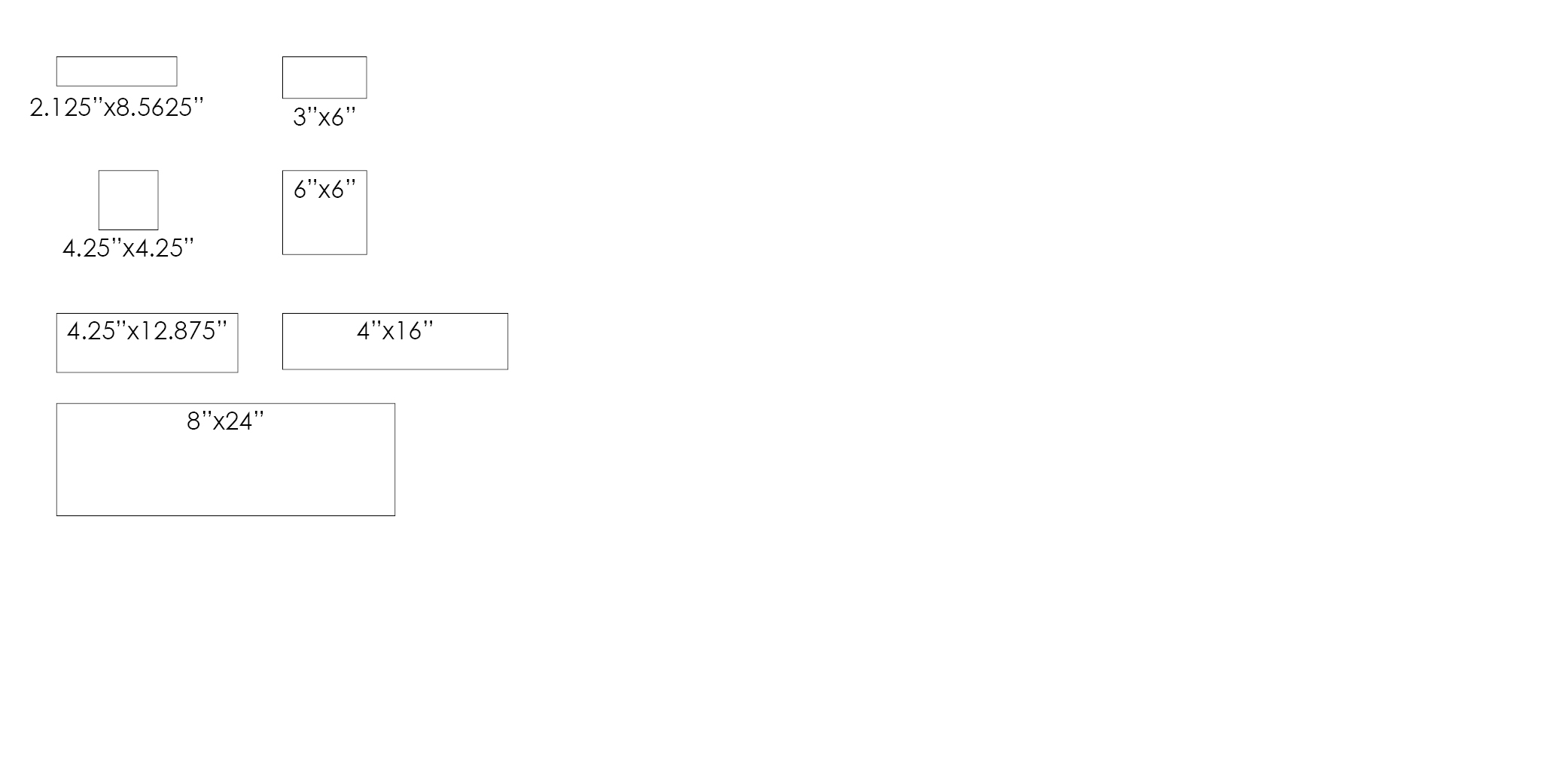 - Seven Sizes | 2.125″x8.5625″ up to 8″x24″