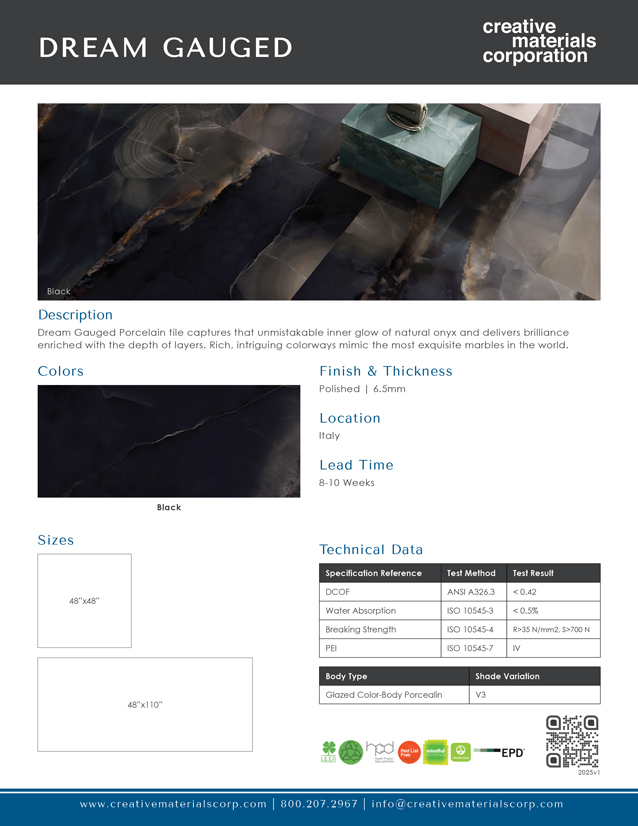 Dream Gauged Porcelain tile captures that unmistakable inner glow of natural onyx and delivers brilliance enriched with the depth of layers. Rich, intriguing colorways mimic the most exquisite marbles in the world. The fantasy of translucency aims to create one-of-a-kind spaces of intricate nuances. May all your design dreams come true!