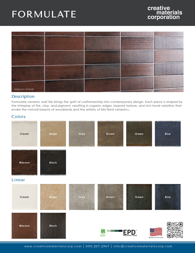Formulate is considered “LEED-friendly” because it has an Environmental Product Declaration (EPD), which may contribute to credit points in accordance with the LEED V4.1 rating system.