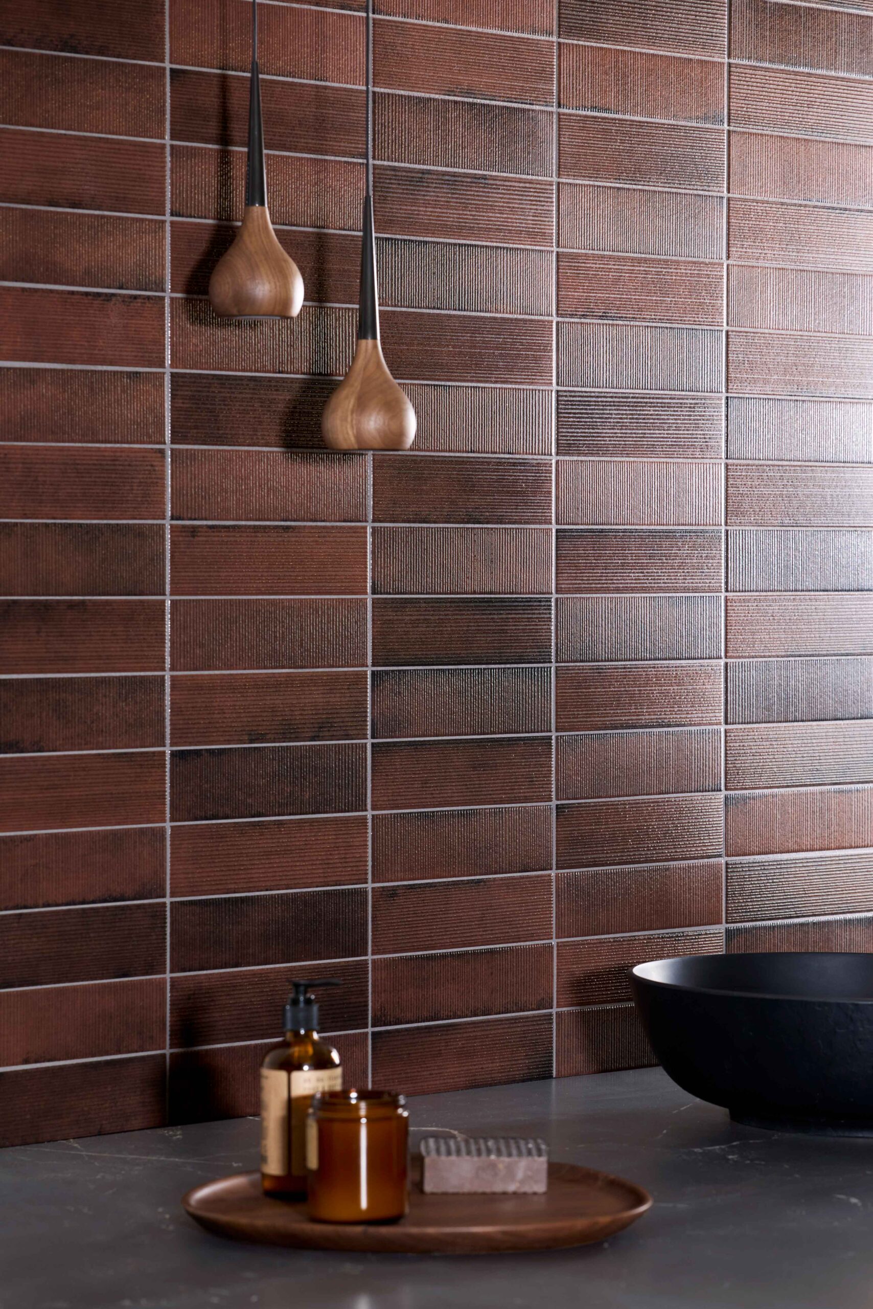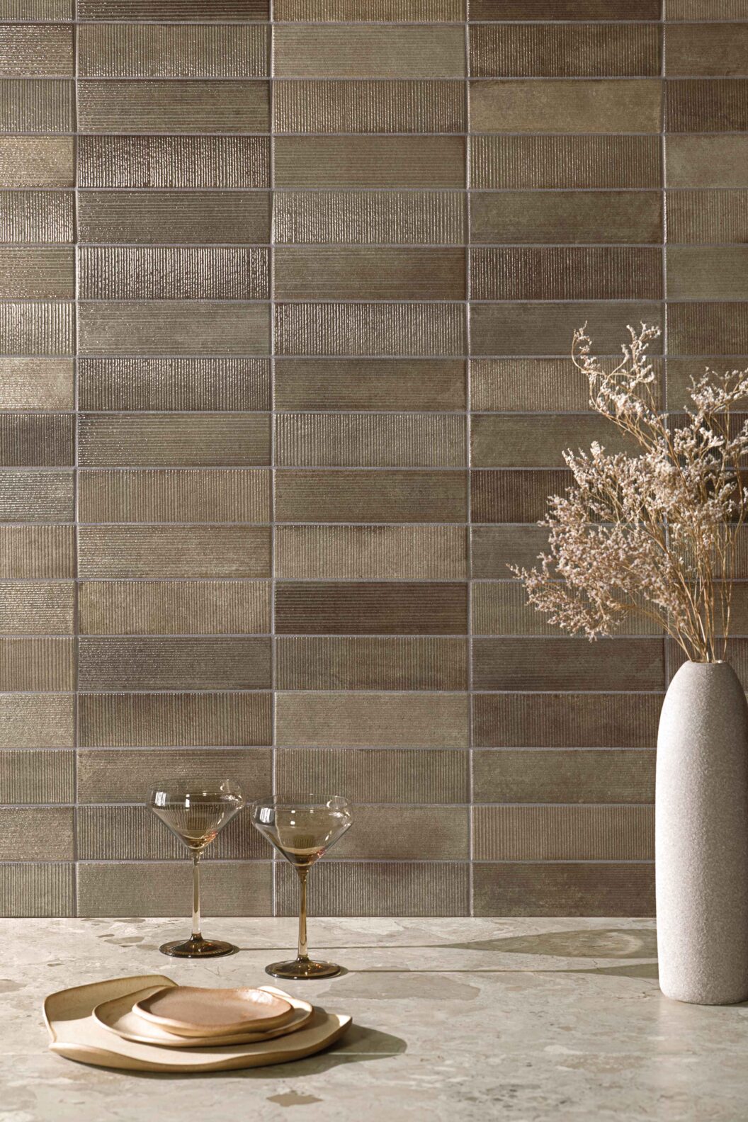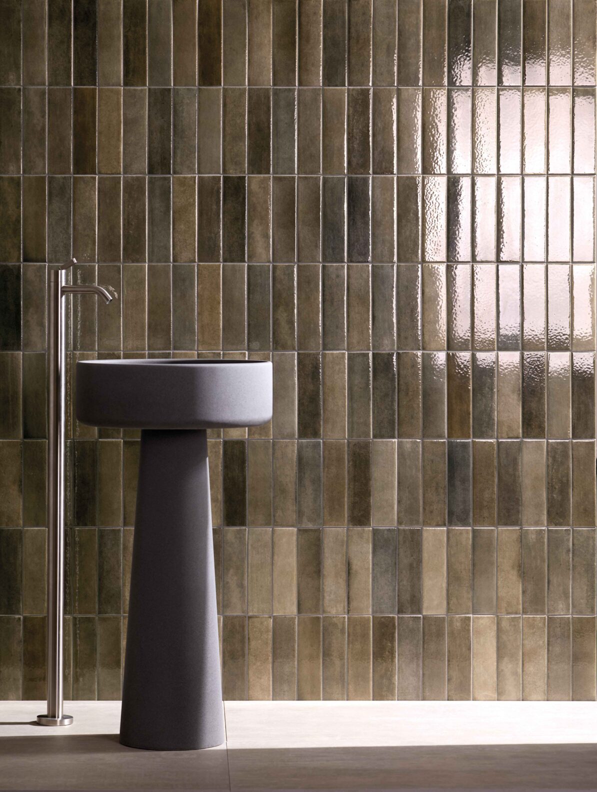 Formulate ceramic wall tile brings the spirit of craftsmanship into contemporary design. Each piece is shaped by the interplay of fire, clay, and pigment, resulting in organic edges, layered texture, and rich tonal variation that evoke the natural beauty of woodlands and the artistry of kiln-fired ceramics. Celebrating the beauty of imperfections with soft, irregular edges and elongated forms, Formulate is designed to feel both strong and soulful, revealing an expressive surface.