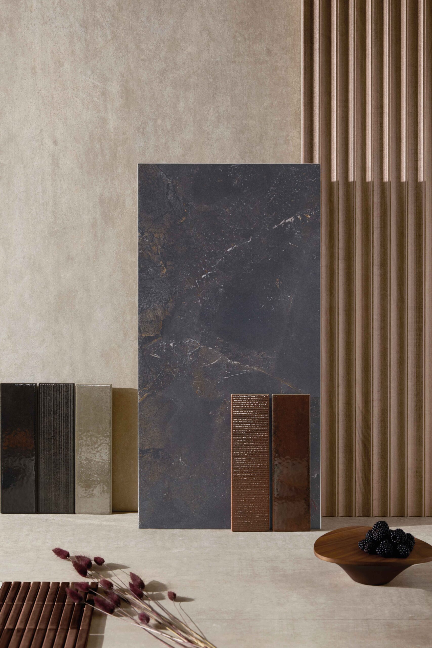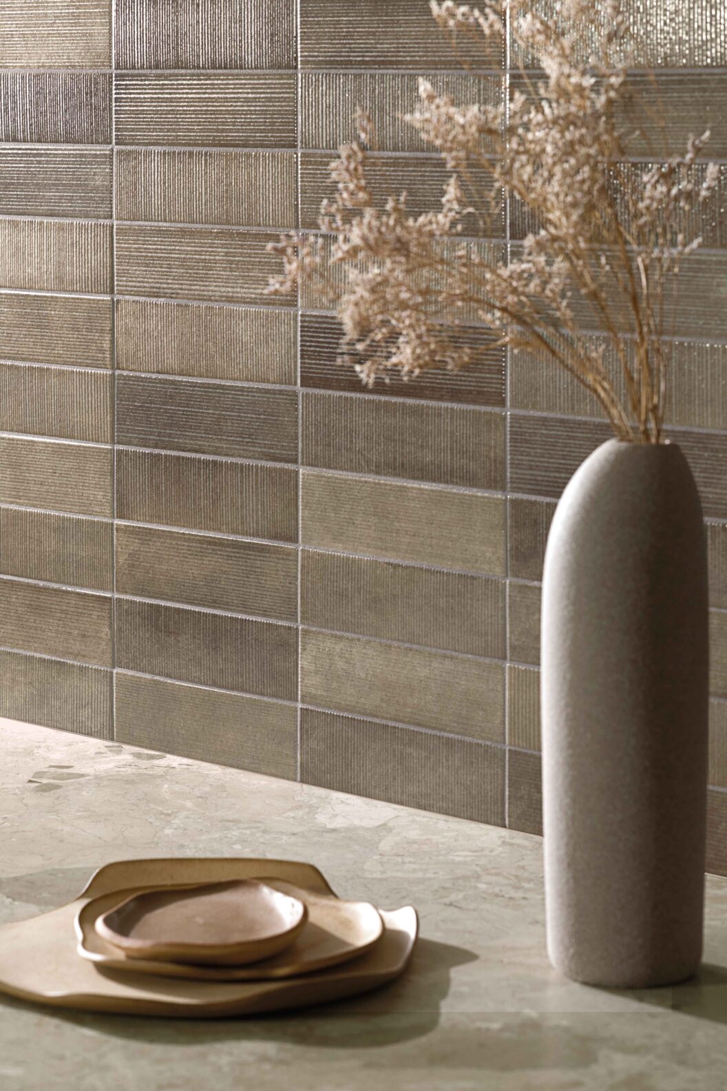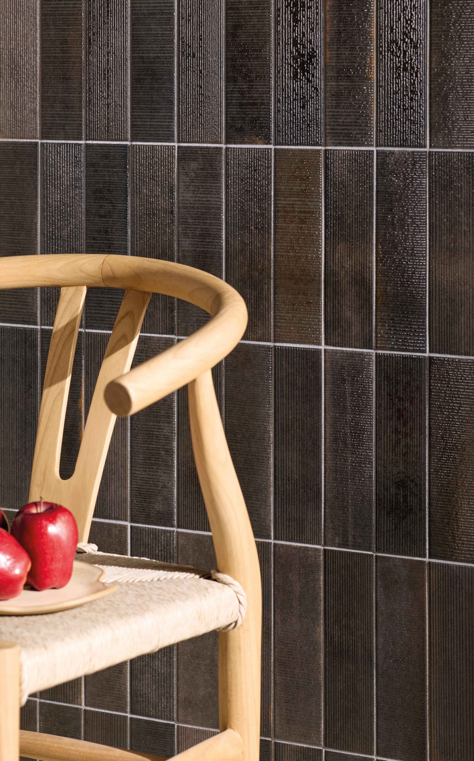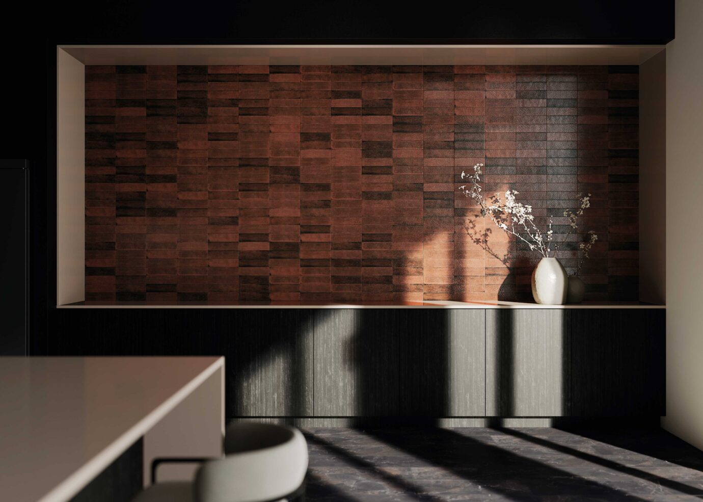 Formulate ceramic wall tile brings the spirit of craftsmanship into contemporary design. Each piece is shaped by the interplay of fire, clay, and pigment, resulting in organic edges, layered texture, and rich tonal variation that evoke the natural beauty of woodlands and the artistry of kiln-fired ceramics. Celebrating the beauty of imperfections with soft, irregular edges and elongated forms, Formulate is designed to feel both strong and soulful, revealing an expressive surface.