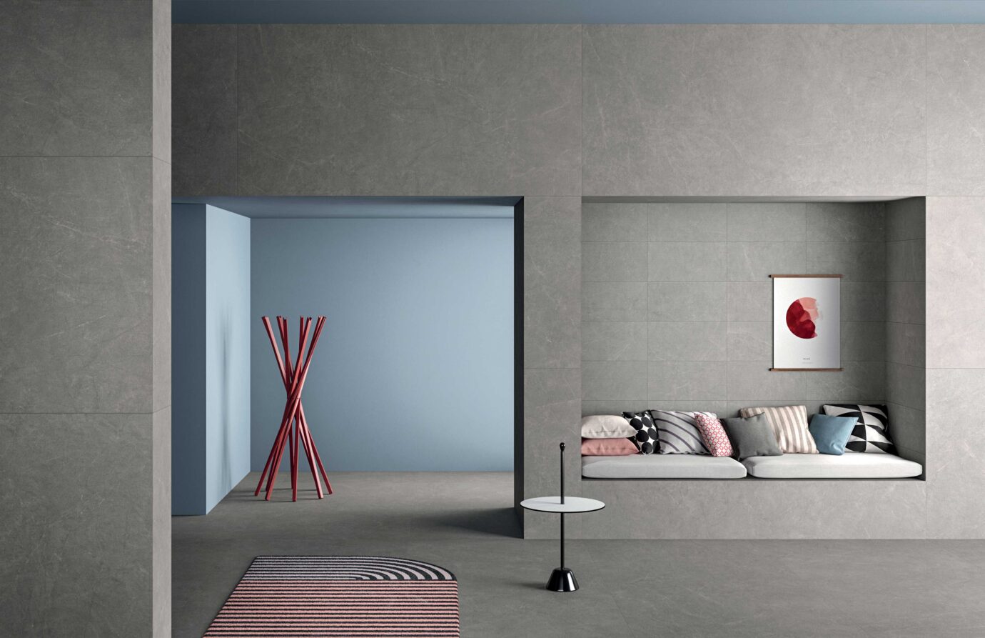 Modern Stone porcelain tile rediscovers three modern stones and combines them in an original manner, creating elegant surfaces with a homogeneous look and delicate opalescent veins. The perfect blend of elegance, modernity, and diversity in the stone aesthetic.