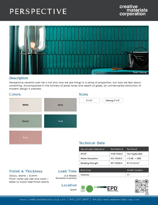 Perspective is considered “LEED-friendly” because it has an Environmental Product Declaration (EPD), and contains recycled content, which can contribute to credit points in accordance with the LEED V4.1 rating system.