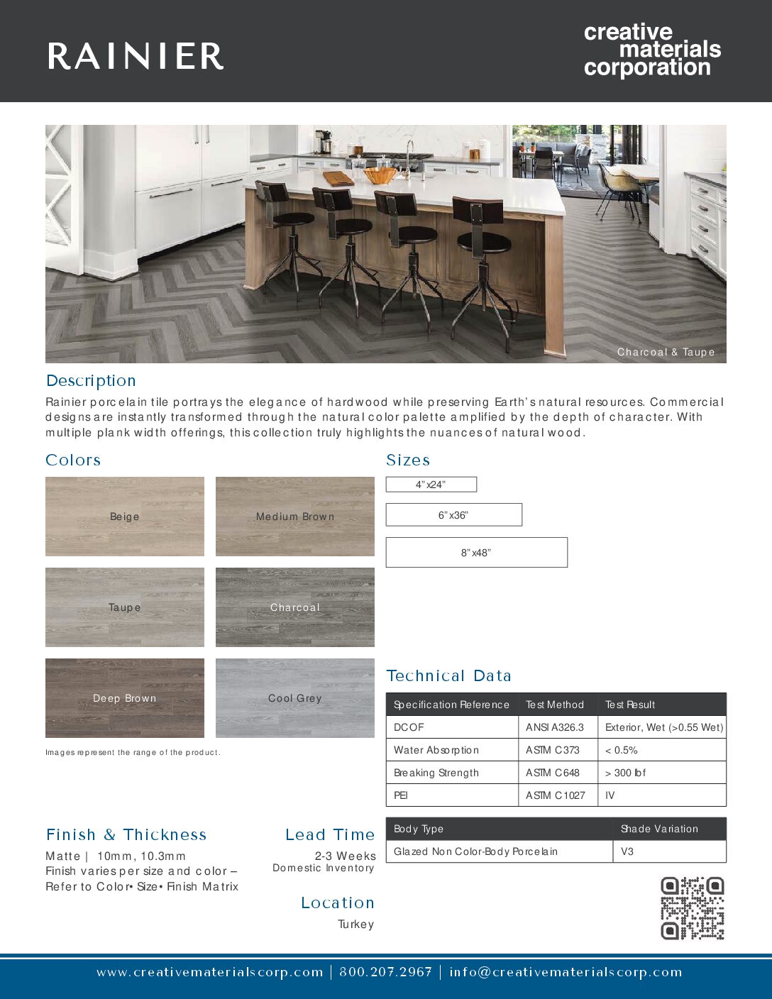 VIEW COLOR & SIZE MATRIX VIEW CUTSHEETRainier Color Palette