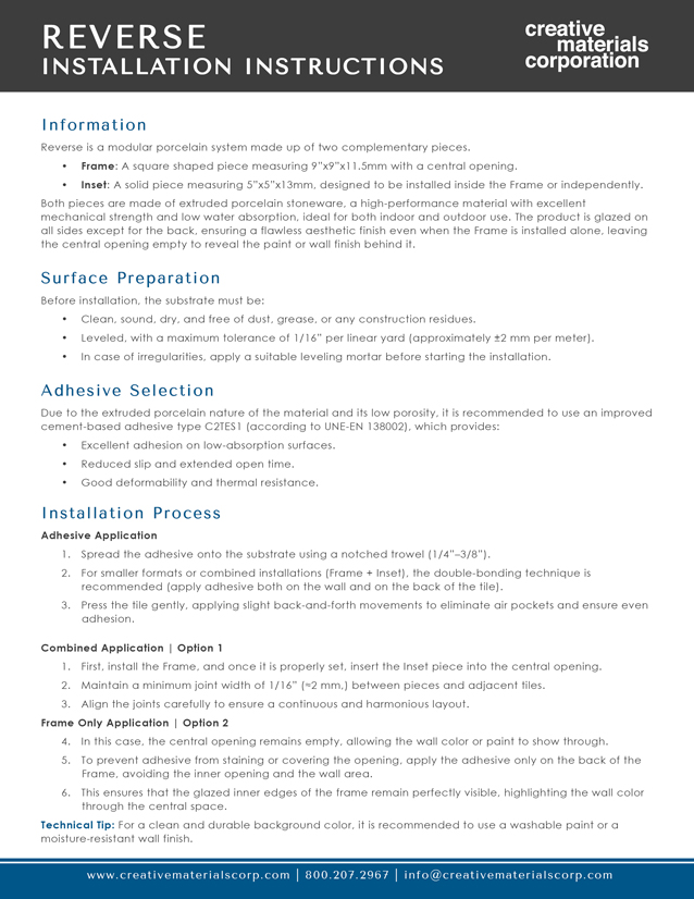 With Reverse, the surface becomes a bold, architectural canvas alive with movement. Use this collection to build flowing, geometric compositions that reflect the space’s personality while delivering the technical performance expected from high-end porcelain wall tile. Partner with Design Services to curate one-of-a-kind patterns.